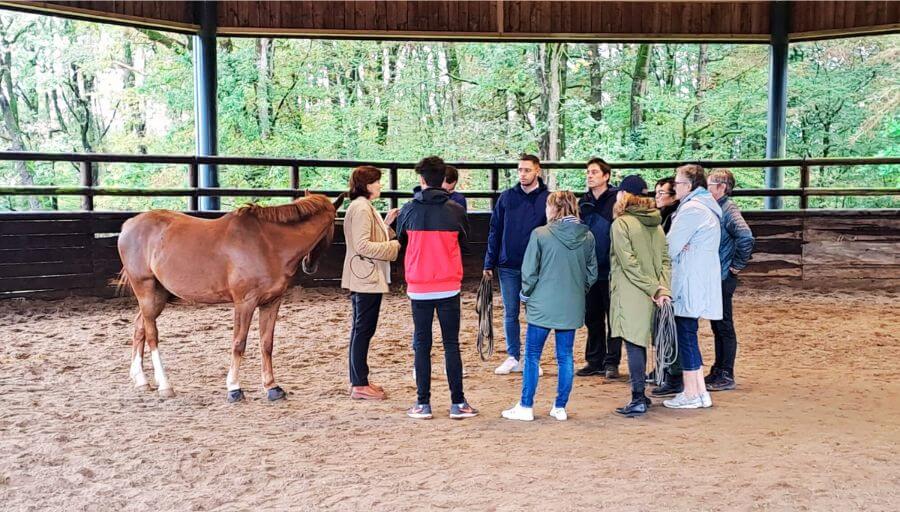 - Méthode expérientielle pour une prise de conscience, avec des débriefings à chaud (Les débriefings à chaud en horsecoaching surviennent immédiatement après les interactions avec les chevaux. Ils offrent l’opportunité de réfléchir rapidement sur l’expérience vécue, de partager les émotions ressenties et de saisir les premières impressions. C’est un moment pour capturer les réactions immédiates et les premières leçons tirées de l’interaction avec les chevaux.) et des débriefing à froid (les débriefings à froid sont des sessions plus approfondies qui se déroulent après un temps de réflexion post-séance. Ils permettent aux participants de prendre du recul, d’analyser les interactions avec les chevaux avec plus de profondeur, d’identifier les schémas comportementaux et les opportunités de développement à long terme dans le contexte de cohésion d’équipe.